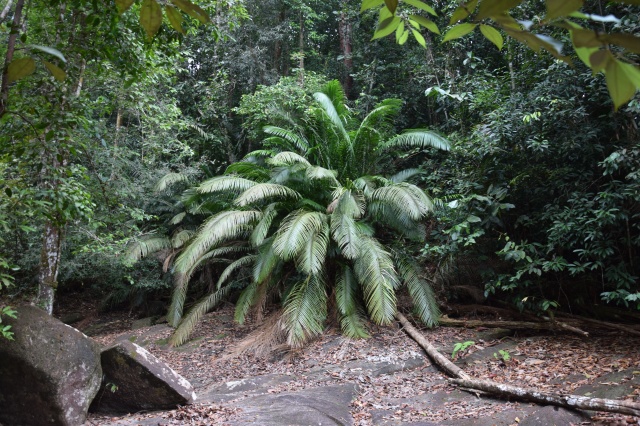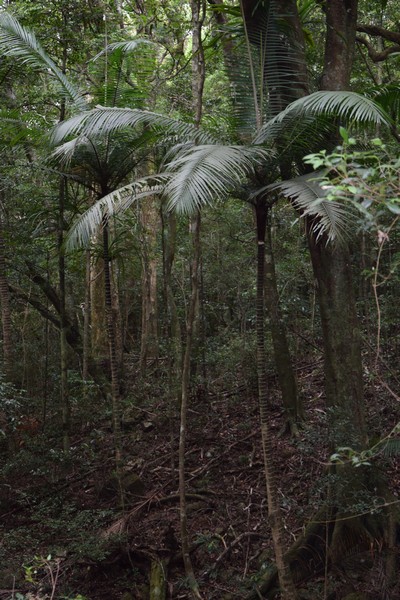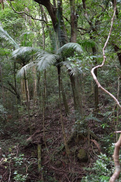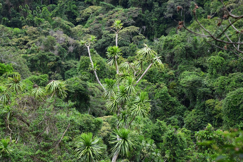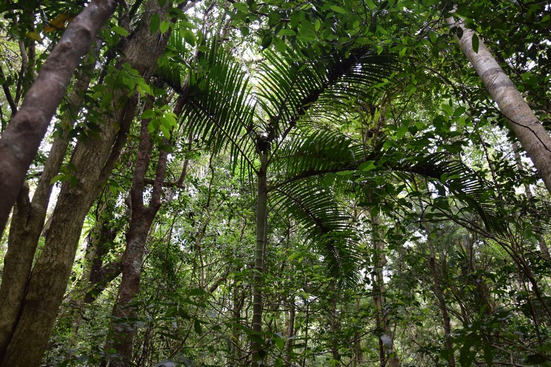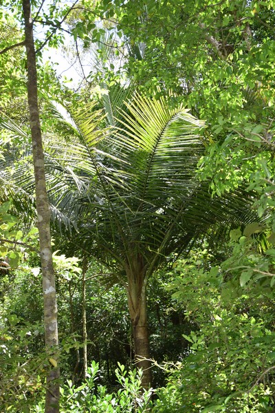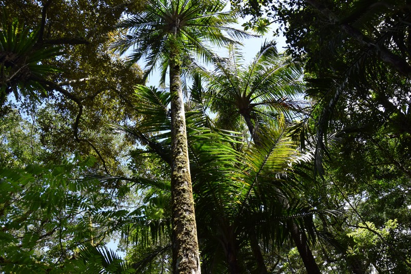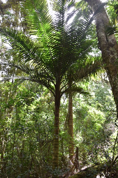 NP Montagne D’Ambre, Antsiranana region, plentiful from entrance near Joffreville to cascade Antomboka up to Lake Maharasika from 800 to 1150m altitude. Growing in small groups of 3-10 adult trees. Local names ‘Kindro’ or Palmier royale. Wood used to make houses, fruit eaten by lemurs and parrots. Mouse lemurs are housed in longitudinal holes in the trunk. Flowering time according to guide is June – July.