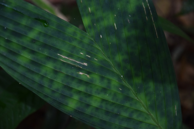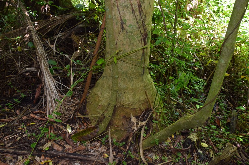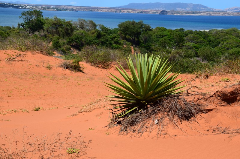An majestic moderate to large solitary unarmed tree palm. TRUNK up to 20m, 31cm diam. (Near crown 18cm); Base sometimes bulbous; Nodal scars faint, nodes 1cm, internodes 3-5cm, sometimes longitudinal holes where mouse lemurs sleep, usually no remnants of sheaths. LEAVES 18-32 in the crown, porrect to slightly arching when positioned in sun; Sheath, Open, length 50cm, wide 35cm, brown-tomentose externally; Petiole, length 30-40cm wide 4-8cm, convex with sharp edges; Rachis length 2,9m, mid leave convex and white-, green, to brown tomentose; Leaflets regular, rigid, lanceolate, oblique, straight, acute, dark green, 49 on each side of the rachis, leaflet length 55cm near the petiole to 80cm near the middle and end. PISTILLATE INFLORECENCE interfoliar, solitary, grey brown tomentose, total length 130cm, branched to 1 order, peduncle length 60cm, rachis length 54cm, rachillae 40 – 70, lower rachillae length 33cm highest rachillae length 16cm, FRUIT obovoid to oblong. EOPHYLL bifid