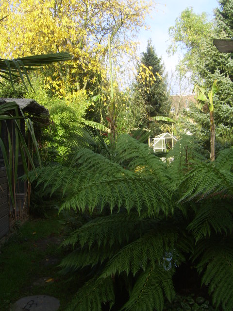 Dimi ,de bananen staan inderdaad super, 2 die bloem maken, wel waren ze laat dit jaar met het koude weer,en de boomvarens gaan weer super goed