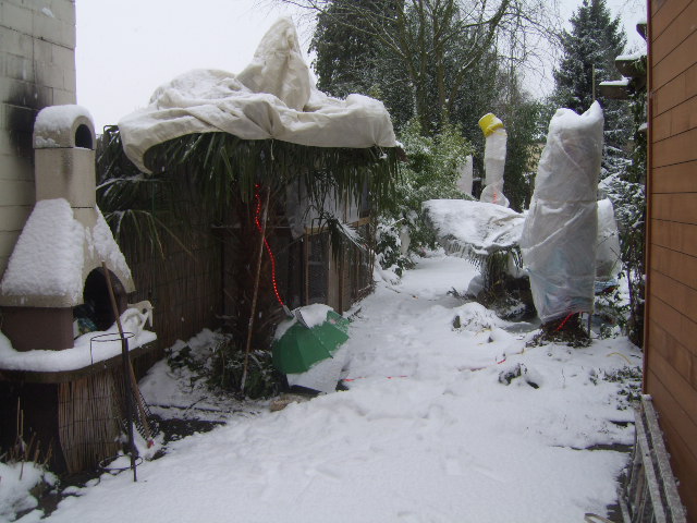 van mooi groen naar wit , het blijft hier maar sneeuwen, gelukkig alles tijdig ingepakt