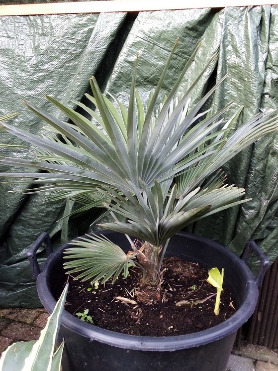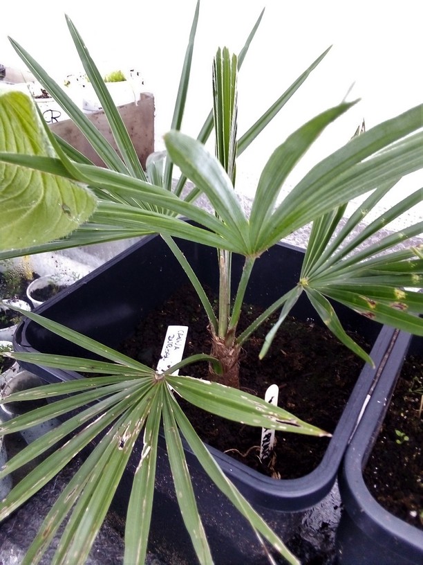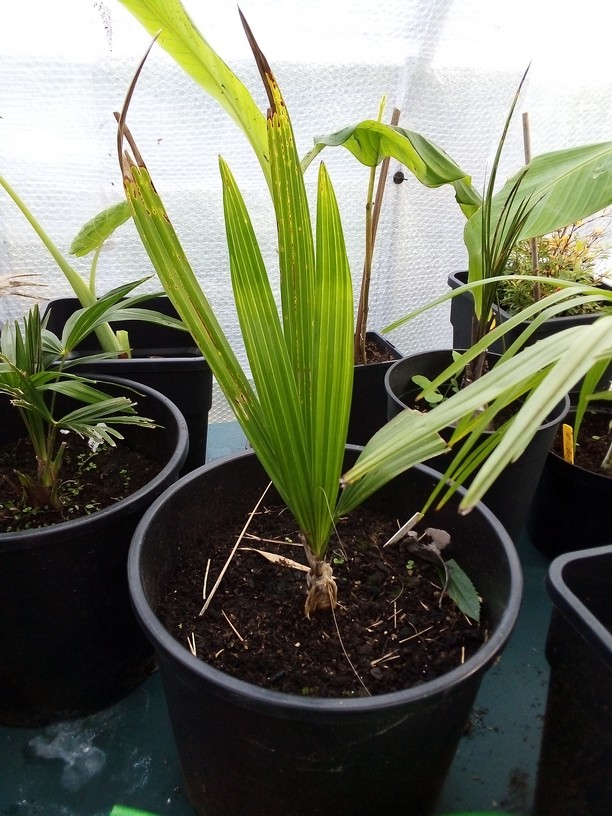Hier een overzicht van de palmen die ik nog heb overgehouden naar de vreselijk koude februari hier waarbij ik meer dan 60 kruisingen van trachycarpus ben verloren
