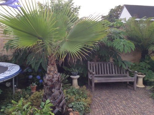 De Canarische dadelpalm heb ik dit jaar in de volle grond geplaatst nadat ik hem 2 jaar in pot heb gehad. Paste niet meer onder de veranda in de winter.