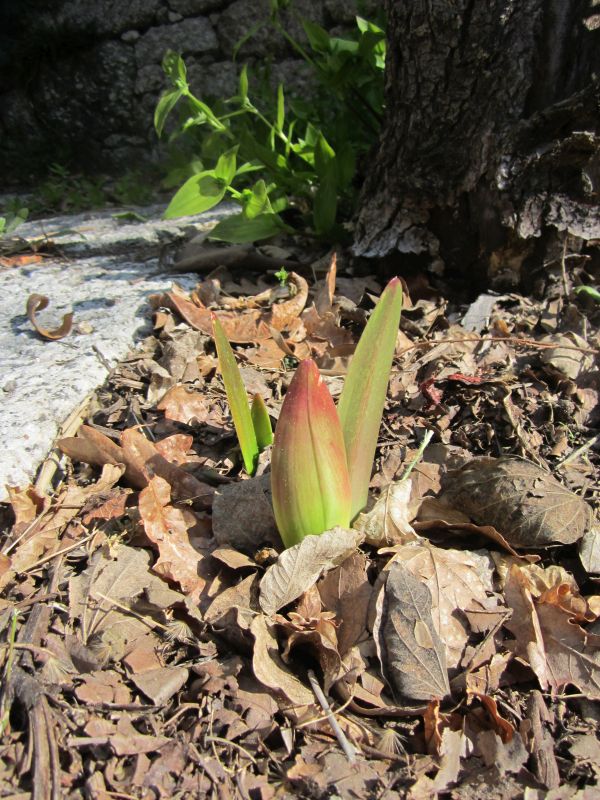 Troposfeer schreef:Het voorjaar is aangebroken hier in noord Portugal. En een leuk resultaat: de Hippeastrum heeft zijn eerste winter buiten overleefd en is ontwaakt. Amaryilissen (Amaryllis belladonna) zag ik hier al en ik dacht altijd dat de verwante Hippeastrum tropischer zou zijn en bovendien dat ze in de winter bloeien. Maar toen mijn exemplaar vorig jaar pas in april ging bloeien wist ik pas dat ze dus ook gewoon in het voorjaar kunnen bloeien. Toen heb ik hem op een redelijk beschutte plek in de tuin gezet. En nu komt hij tevoorschijn! Het is de rode variant, die vind ik het mooist...