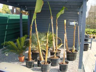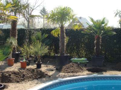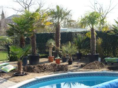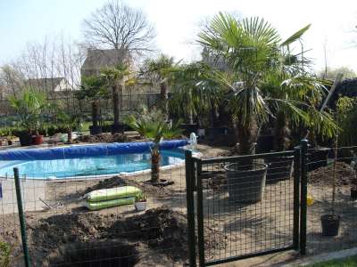 het was 460 km op en af en toch dik 5 h rijden op en af.... maar je moet er wat voor over hebben, hier in de buurt is eigenlijk niks van deze planten te vinden qua grootte en prijs dus... hopen dat alles overleefd, de yucca en sabal gaan zowiezo op een verhoogd zandbergje geplaatst worden voor het waterafloop, er zijn wel wat tegenstrijdige info ivm de sabal minor, de een zegt in de volle zon en andere zeggen dan weer in de schaduw dat deze het beste doet.