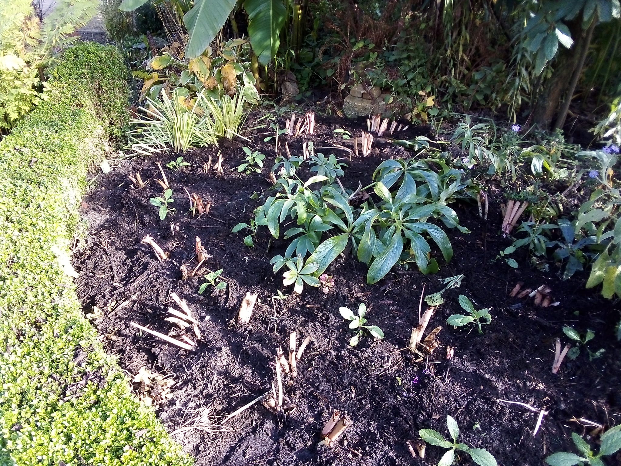 De andere is een perk net aangelegd van colocasia pink china met bonariensis.