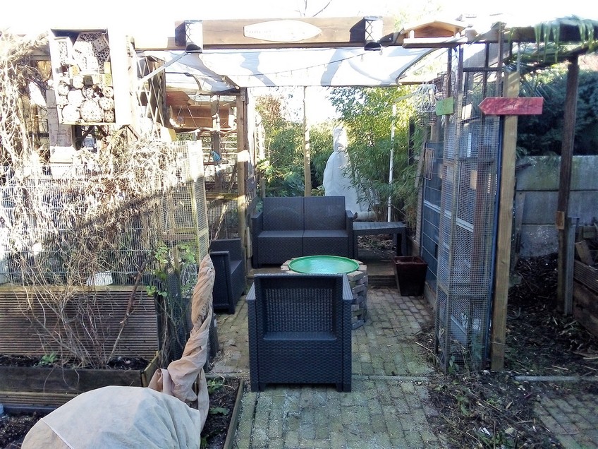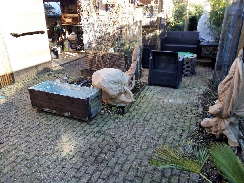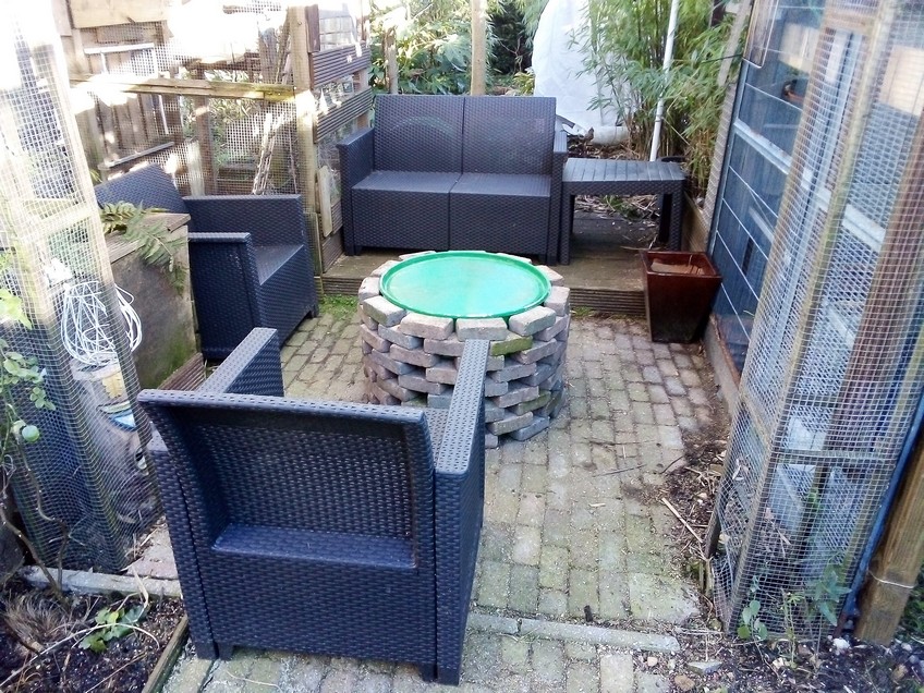 Dacht even aan een grote plantenbak, maar een open vuurtje is altijd lekker en gezellig, zolang je je buren te vriend houd.
