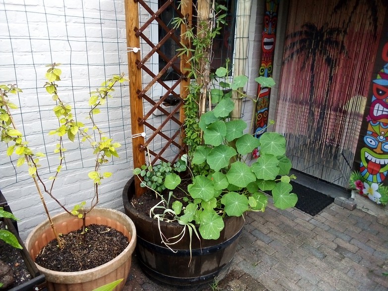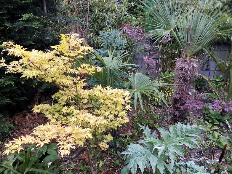 Rechts heb ik een rij coniferen uitgegooid en vervangen door bamboe die ik had staan. Door die te verplaatsen, kwamen er weer nieuwe openingen bij zucht.
