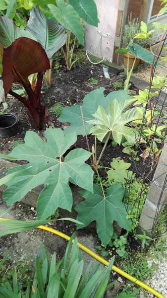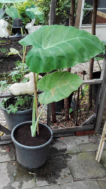 Kleine update van eigen kweek en ik kocht net een Musa Dwarf Cavendisch in de Lidl voor 1,99. Kon het niet laten. Op de foto's : 1. Jack's Giant maakt een uitloper?????? 2. Collectie eigen kweek met o.a. Ensete Glaucum, Musa Balbisiana, Colocasia Burgundy Stem en Colocasia Pink China. 3. Mijn musaatjes