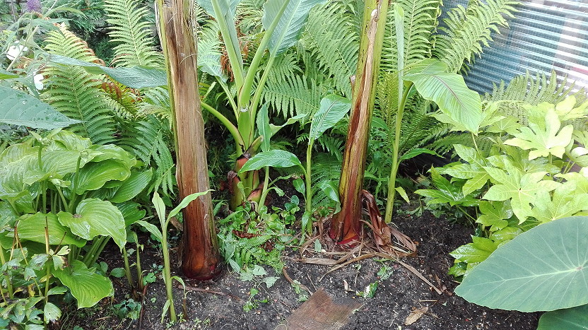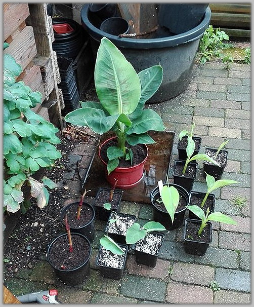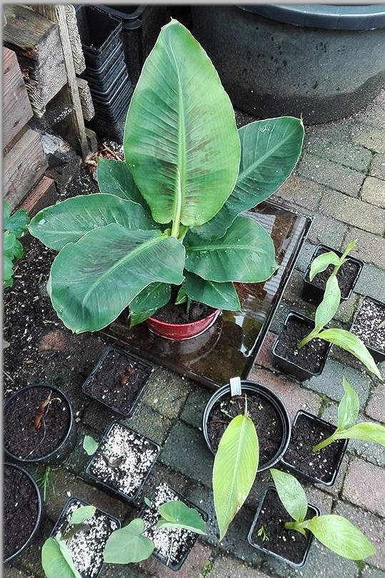 Musa collectie mijn kleintjes. Dwarf Cavendisch (1.99 lidl), Ensete glaucum en 1 balbisiana