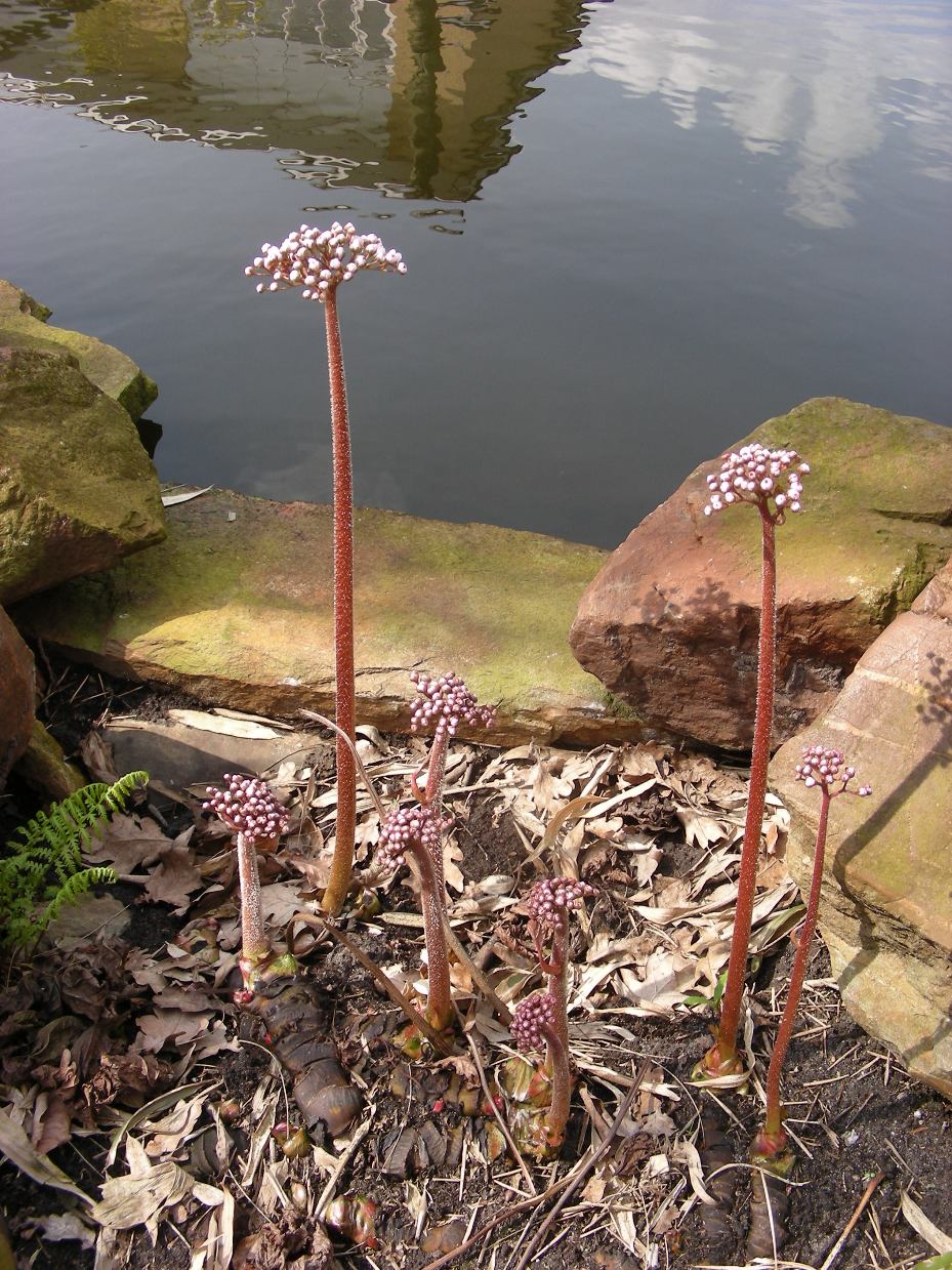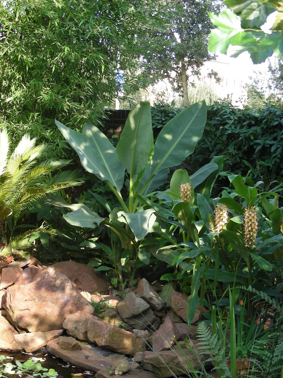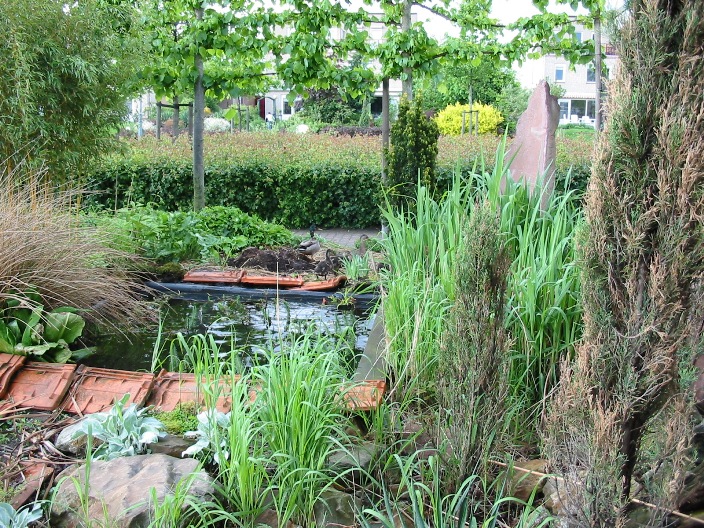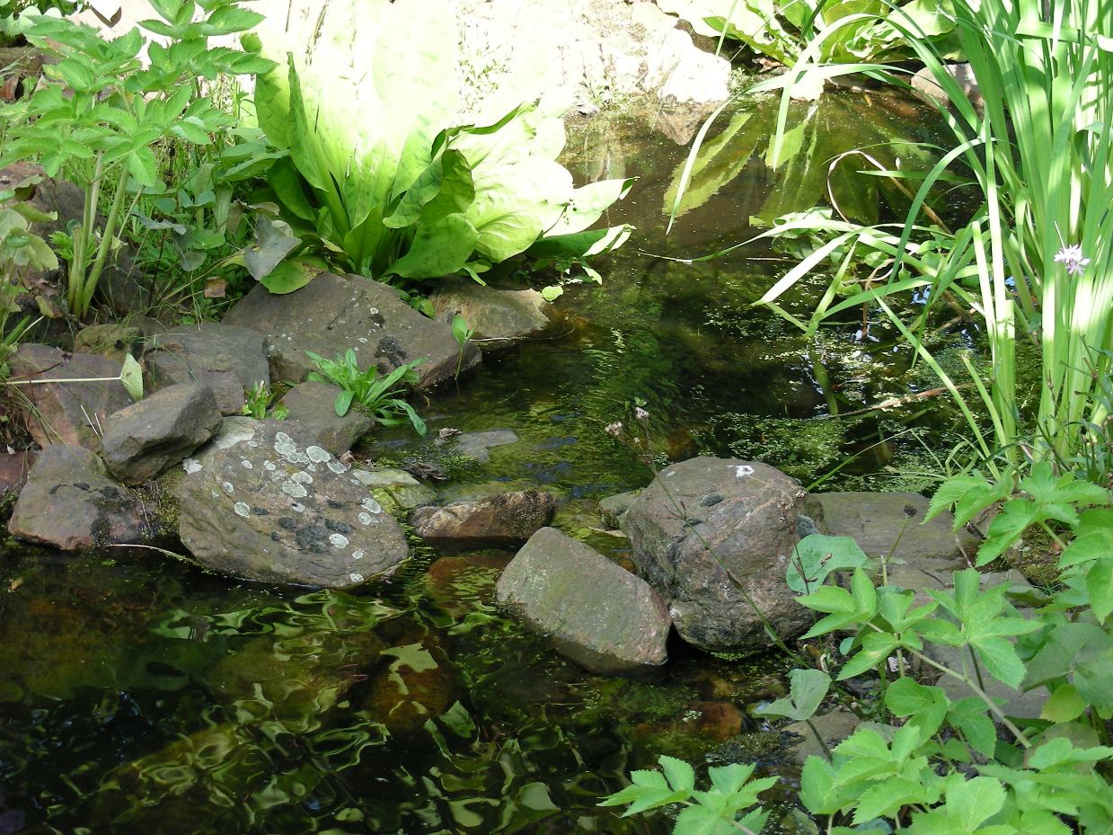 Rondom de vijver hebben we regelmatig gewisseld van planten. De planten (vooral bladplanten) zoals we die nu hebben staan al een aantal jaren en bevallen erg goed.