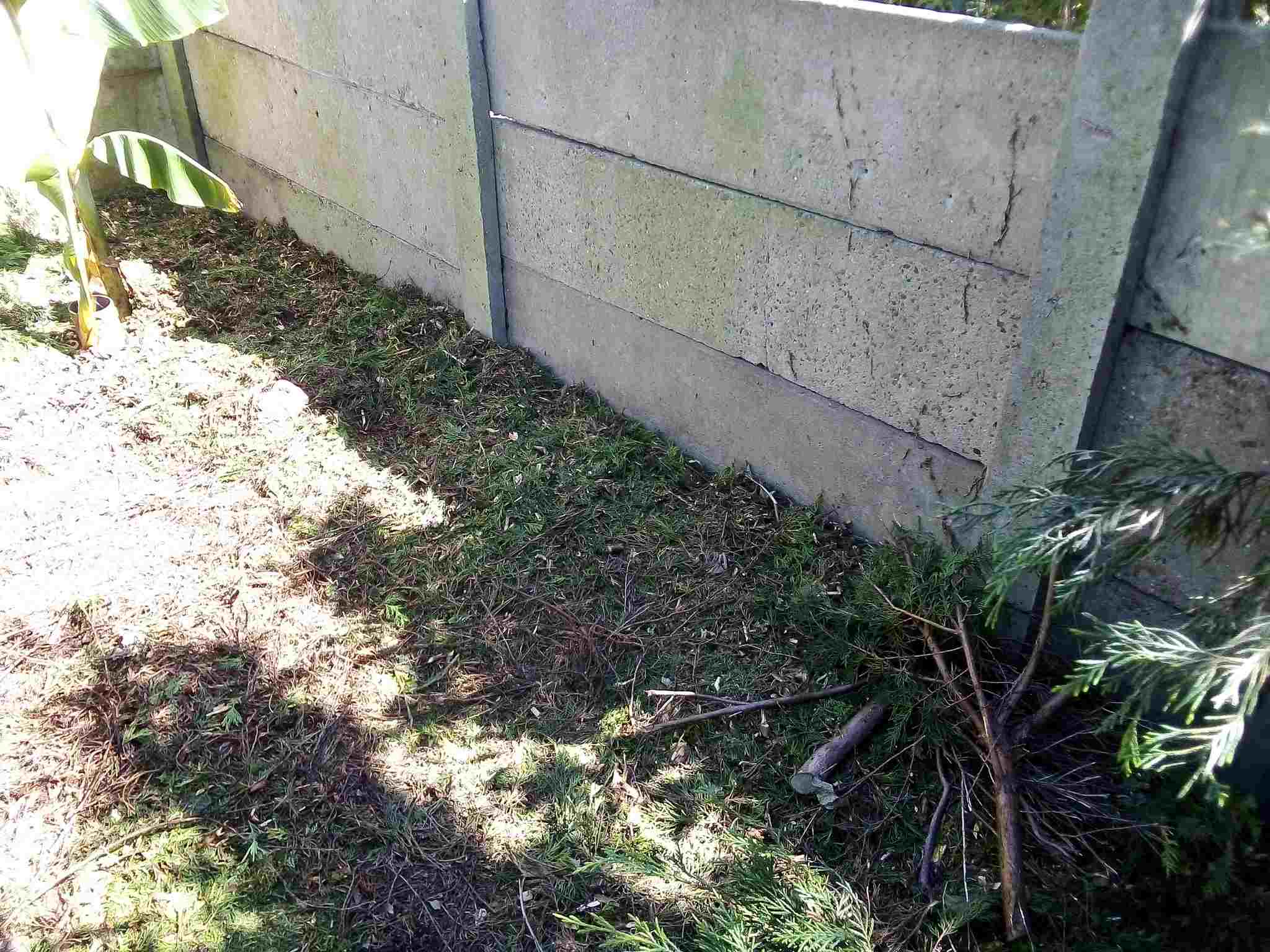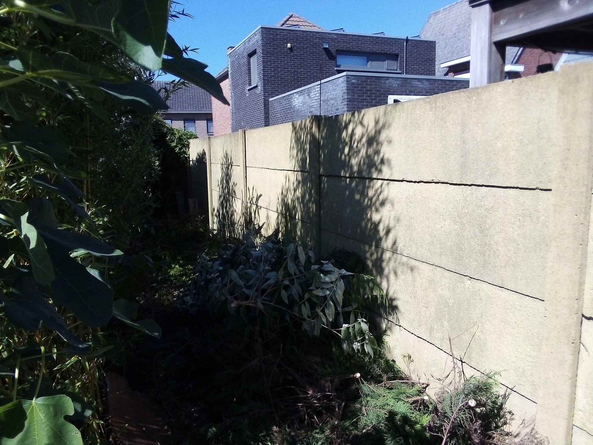 Zoals je op bovenstaande foto's kan zien, staat er nu een schutting van betonnen platen.