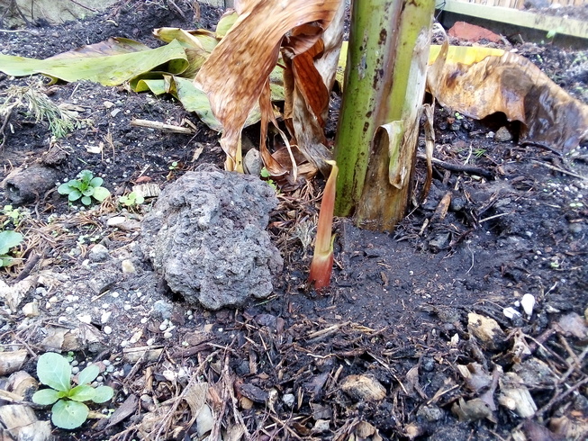 - Naast de musa basjoo rechts heb ik intussen de mekong giant geplant