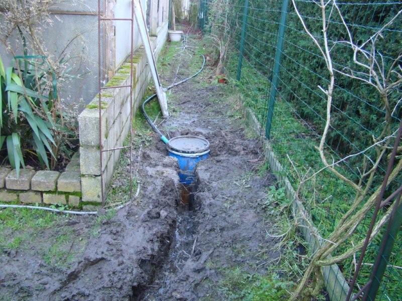 Ze liggen inderdaad niet zo diep, maar als we ze dieper steken zou de pomp dag en nacht draaien... zoals je op een foto kunt zien staat het water in de gleuven. Ook heeft het geen zin om onder de klei te graven, en op sommige plaatsen zit de klei redelijk hoog.Het voornaamste voor ons is dat we niet meer door het water en de slijk moeten lopen. De grond is hier momenteel zo verzadigd dat na het graven de geulen bijna dadelijk onder water staat, Rudi kan dus maar in kleine stukjes werken.