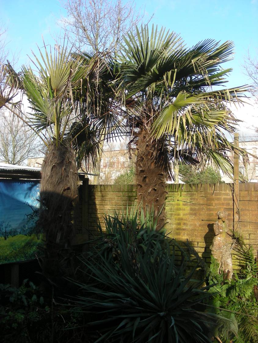 Toch moet ik zeggen dat de palmen er ooit beter hebben uit gezien als tegenwoordig. Van de 3 grootte palmen die in de tuin staan zijn er 2 bijna kaal en 1 ziet er nog redelijk goed uit.