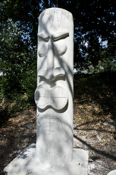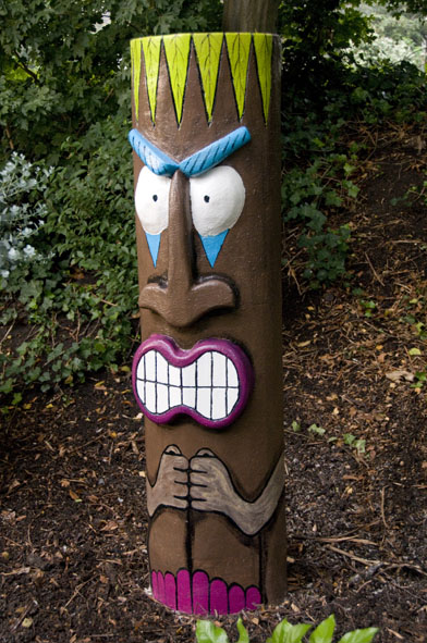Ik hou helemaal niet van die totopalen en ook niet van standbeelden, volgens mij heb je wel een lekkere grote tuin?