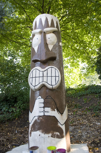 tuinproject tiki van gips voor in de tuin