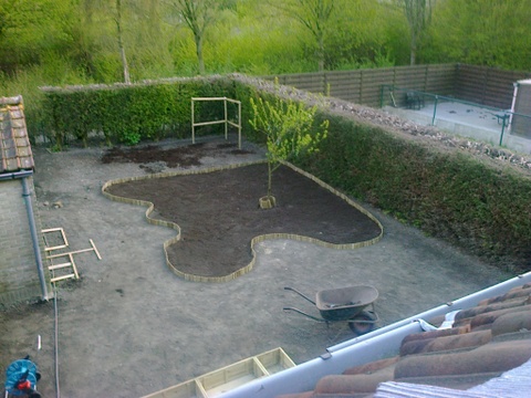 Vorige winter zijn we verhuisd en na dat de binnen volledig klaar was ben ik maar eens buiten begonnen. Toen het nog vroor alles gras eraf beginnen steken, ben ik wel even mee zoet geweest en daarna alles frezen en mooi leggen. En de rest wees zijn zelf uit. Graag jullie mening.