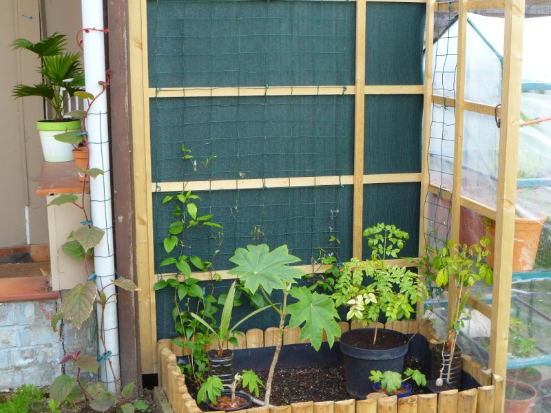 de gele naamplaatjes verklappen al dat ik een bezoekje mocht brengen bij Eduard , een leuke verzameling boomvarentjes gekocht . ik hoop ze ook zo hoog te krijgen als zijn exemplaren dit was een van de unieke momenten dat ik niet door de knieen moest maar omhoog moest turen om de veren te aanschouwen