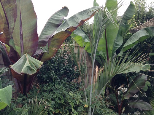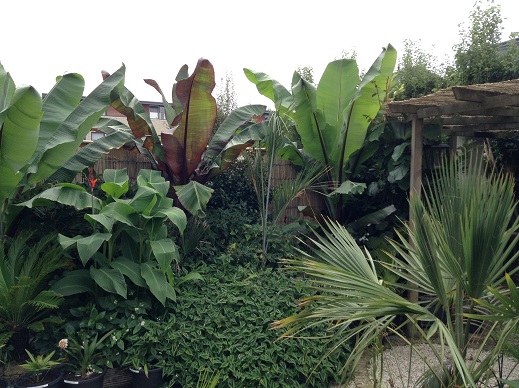 Ik probeer alles uit maar het grootste deel bestaat toch wel uit bladplanten, met name palmen, bananen en bekende harde jongens Cycas, Yucca, en veel Fatsia en Canna.