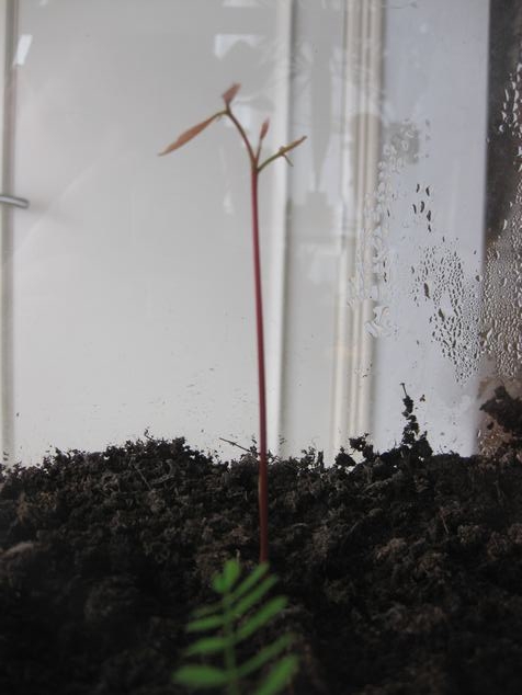 bovenaanzicht van mijn zaaibakje met albizia ,trachy en lychee
