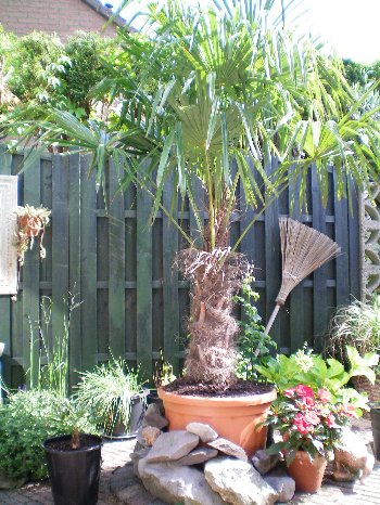 Waarom zet je eigenlijk die grote Trachycarpus fortunei niet in de volle grond? :)