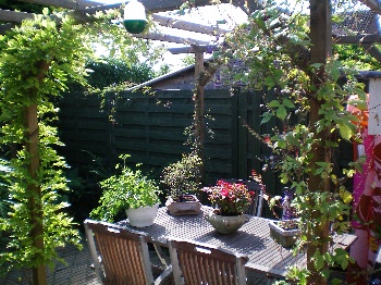 zoals eerder beloofd, hierbij de foto's van mijn tuin,voornamelijk gaat het om de palmen.