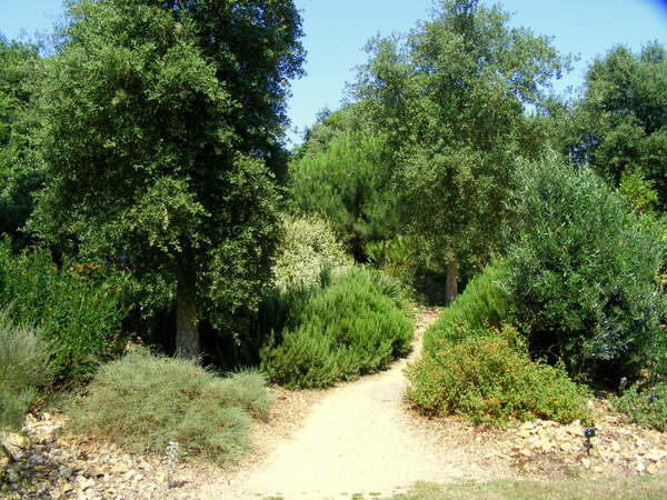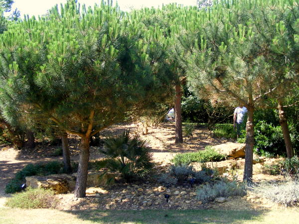 Er staan ook wat trachycarpus tussen, phoenix canariensis en kurkeiken.