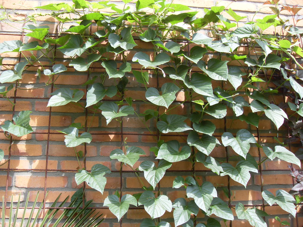Geweldige groei van de Ipopmoea learii. De knoppen zijn in de maak, nog twee weken en de muur wordt overladen met blauwe bloemen!
