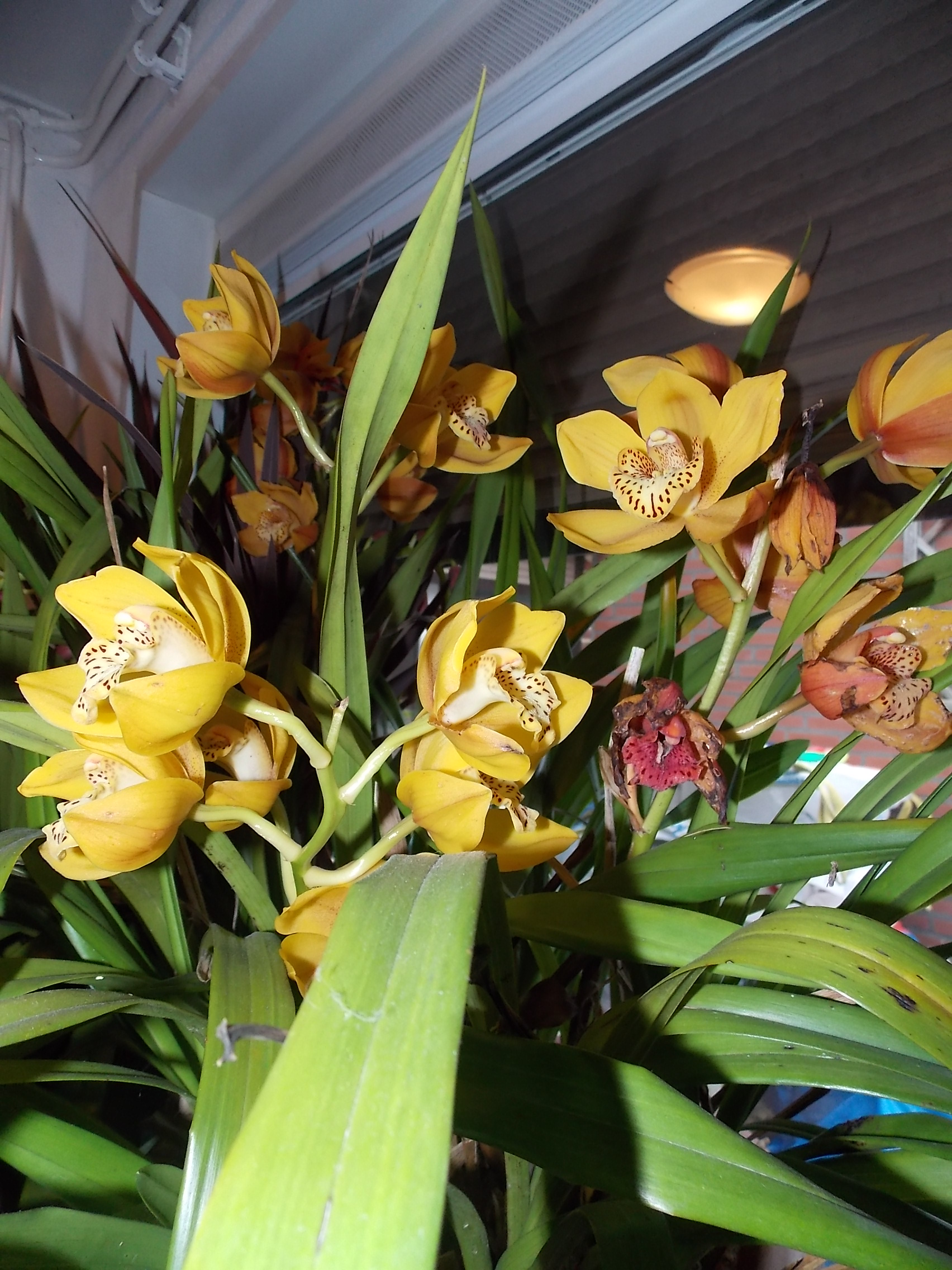 De Cymbidium's staan binnen volop in bloei nu. Die moesten even op de foto.