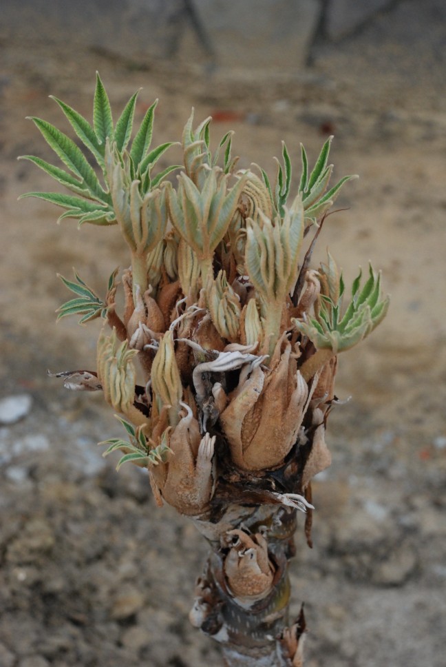 Ik ben net even gaan piepen in de tuin. Ik heb er 3 staan. De grootste die geen winterschade had begint ook aan zijn blad-knop vorming, bij de andere die wel winterschade hadden (de top was zacht/rot) is er groei merkbaar; uit het centrum van de stam begint er een harde kern te groeien.