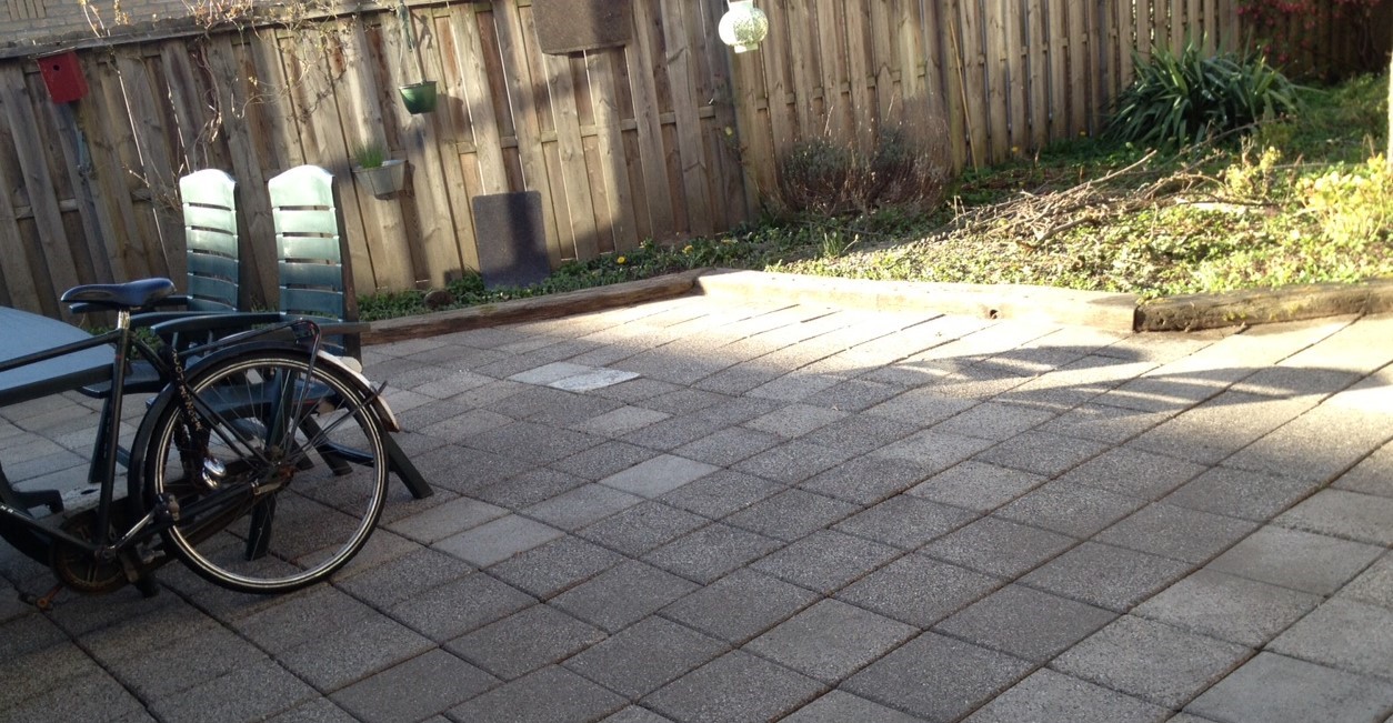 Volgend jaar komt er sowieso een nieuwe schutting. Is hard nodig. En andere tegels die wat sfeervoller zijn :)