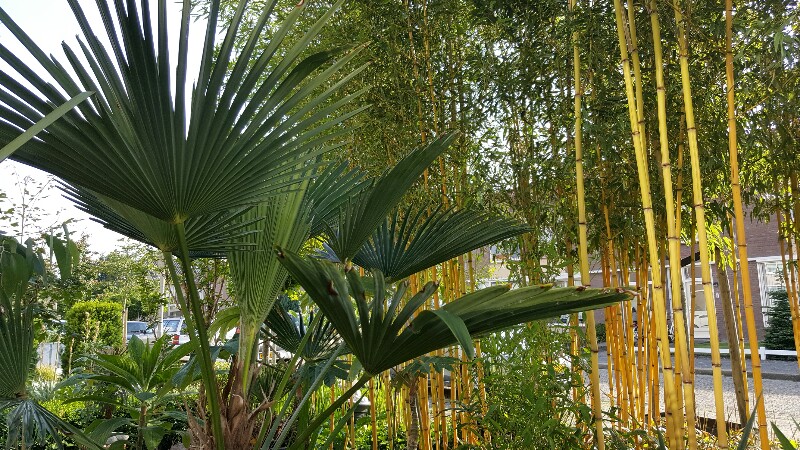 Top :thumb_up: Het staat lekker vol met een mooi jungle effect door de bamboe en de planten ogen tiptop. De kuippalm met de grijswitte keien kan ik niet thuisbrengen? En op een van de kleine afbeeldingen meende ik het silhouet van een stekelige succulent te ontwaren (foto 8 ?).