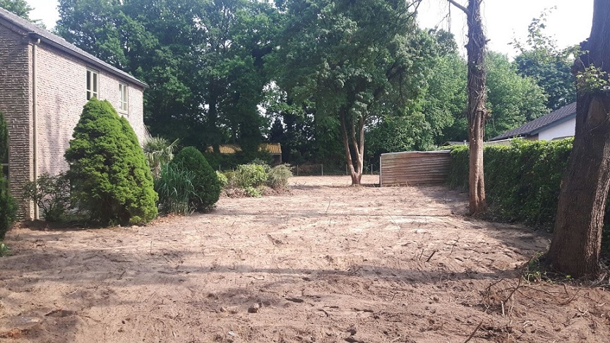 Heb dat vervolgens door de hele tuin verspreid en gelijk sleuven gegraven voor de beregening en stroomplan.