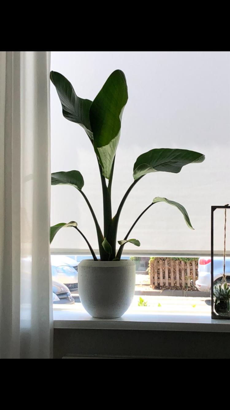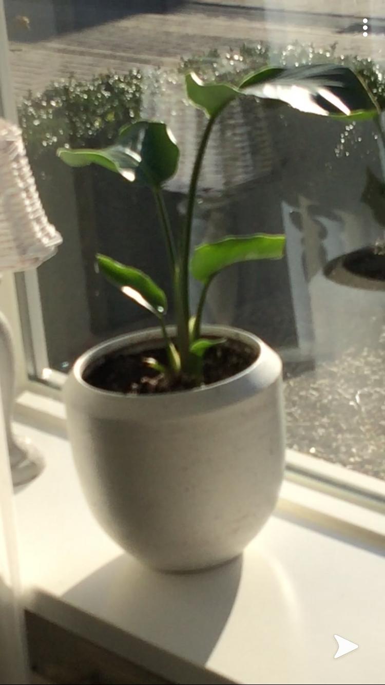 In de winter van 2018 bij het tuincenctrum een jonge Strelitzie nicolai. Volgens mij had hij toen de eerste 3 bladeren en heb ik wel iets van 14 euro voor betaald(was ook intratuin dus de hoofdprijs natuurlijk.) Maargoed ik was verliefd op een groot exemplaar en moest hem mee hebben en inmiddels wordt het zelf ook al een aardige jongen.