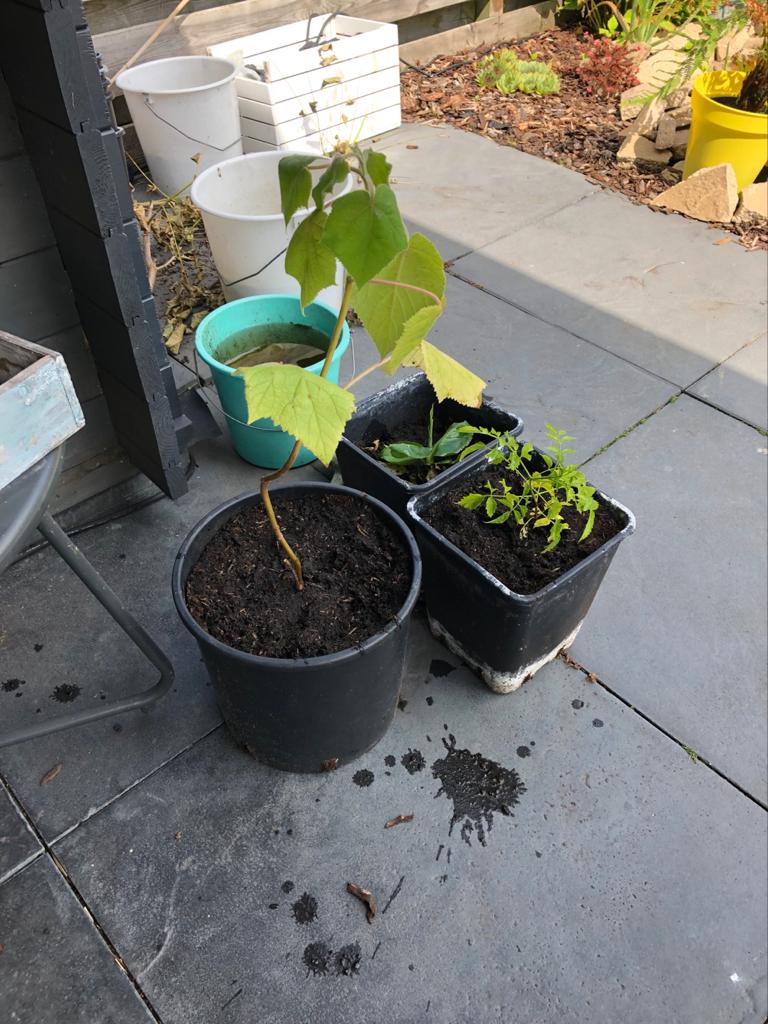 Slecht aangekochte Paulownia vanuit engeland. Nu helemaal tot de grond afgesnoeid. Hopelijk loopt hij nu snel en recht uit.