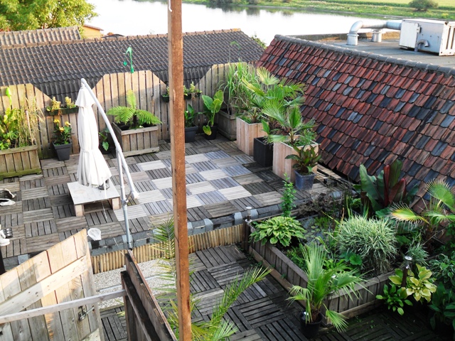 hier een paar foto's van het dakterras van mn buurman/collega en ik. we wonen boven het bedrijf waar wij werken.