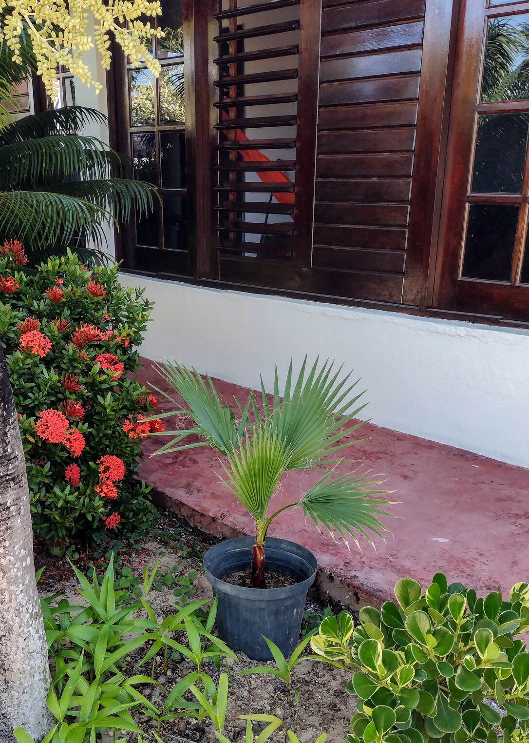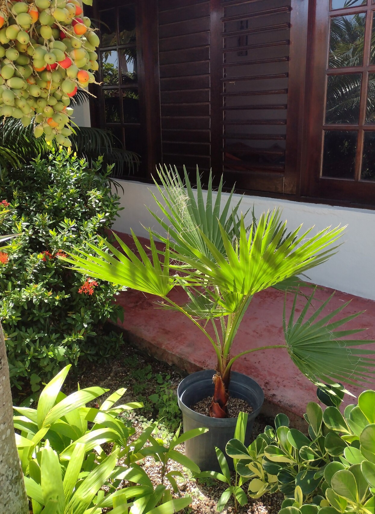 Zo lang die genoeg water krijgt in het droge seizoen denk ik dat hij het goed zal doen. Ga je hem nog in de volle grond zetten?