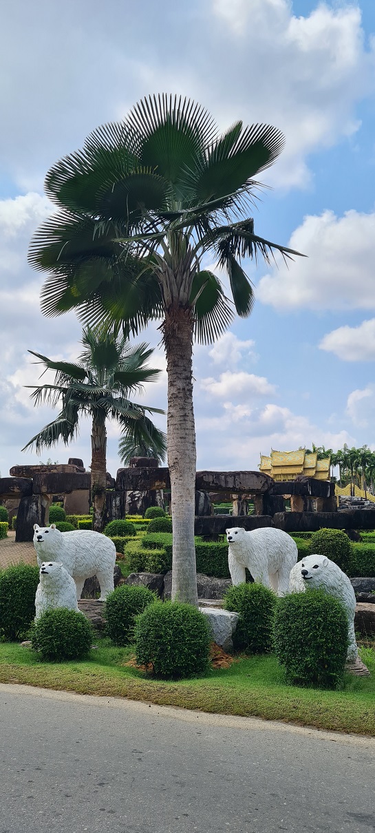 We waren wel stipt om 08:00 al binnen, om direct het achterste parkdeel te doen waar nauwelijks of geen schaduw is - "Palms of the world" en de Cycad nursery, zijn natuurlijk een must see, evenals die maffe Franse tuin, compleet met diono's en ijsberen...