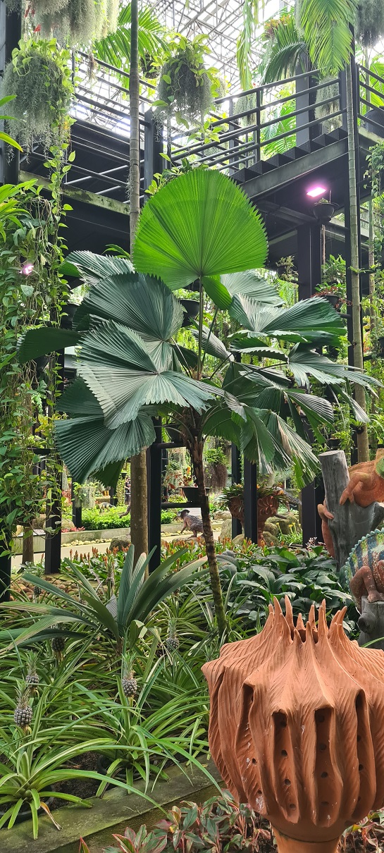 Pas daarna hebben we het voorste deel gedaan waar je de 'canopy walk' kan aanhouden om de zon enigzins te mijden, de droge tuin, en tenslotte het pad onder de canopy walk. Dit laatste stuk is wsl het mooiste, en je loopt vrijwel geheel in de schaduw van de grote palmen en andere begroeiing.
