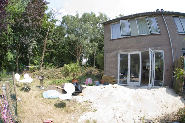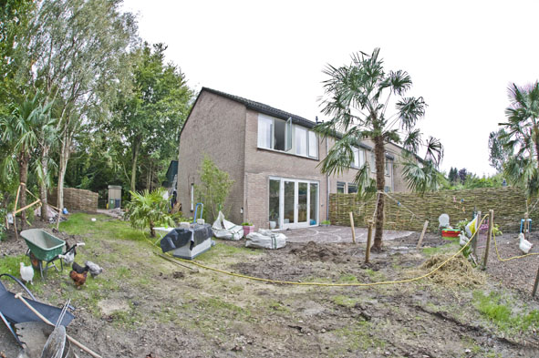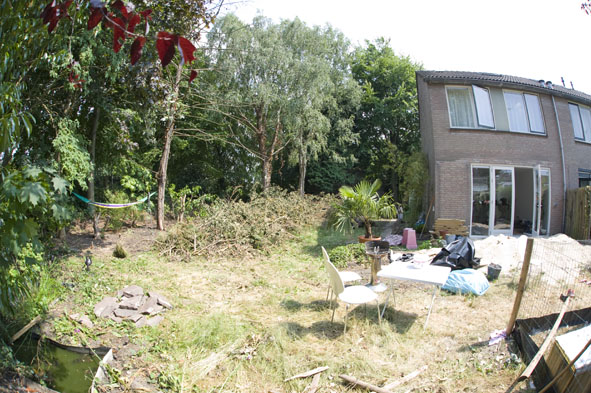 Er is op dit moment wel een vijver, maar die is voor onze pekingeend, de vijver zoals ie nu is gaat er wel uit en wordt iets groter en rond.