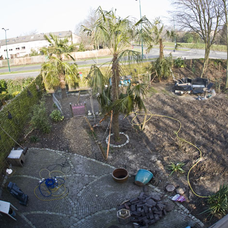 - Deze vijver gaat eruit en er komt een ronde grotere voor terug