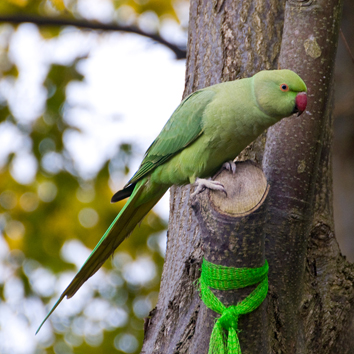 - Halsbandparkieten in onze tuin maken het tropische plaatje compleet