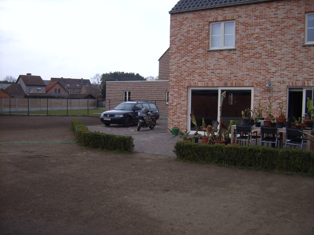 Hieronder een foto om te verduidelijken hoe de tuin tegenover het huis staat. Miss is het zo een beetje duidelijker. Alle braakliggende grond :-) wordt gras daarond komt alles vol met exoten.