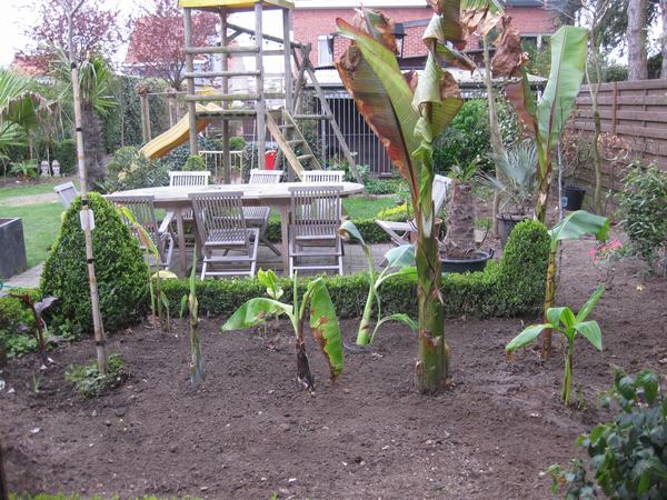 Vandaag van het mooie weer geprofiteerd om al enkele banaantjes aan te planten .
