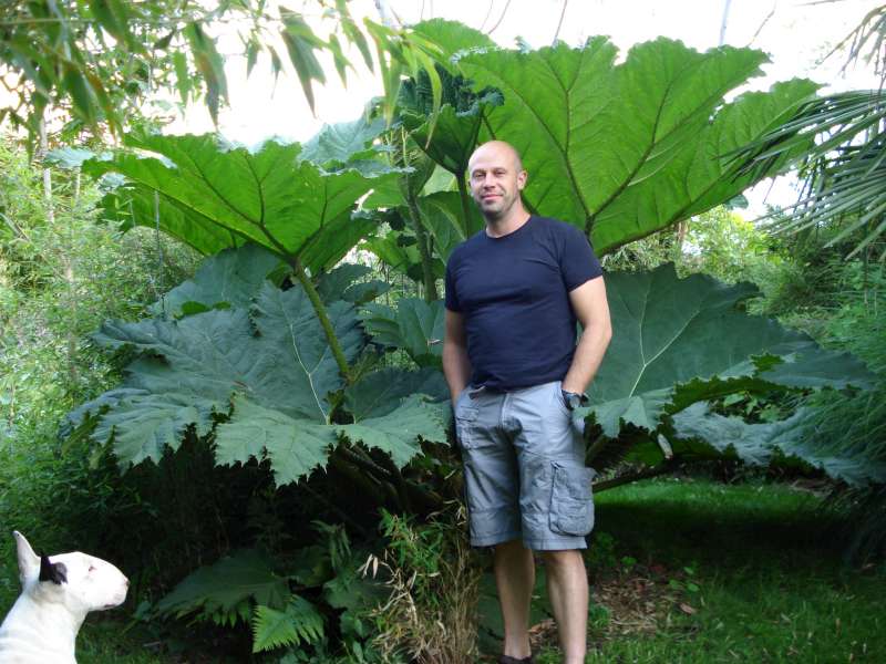 De Gunnera heeft dit jaar een blad met doorsnee van 205cm bereikt.