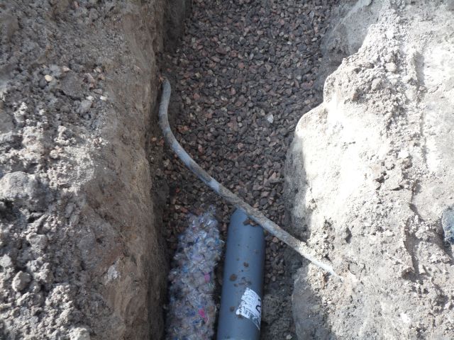 En toen kwam het beul werk het ingraven van de drainage en pvc leidingen.
