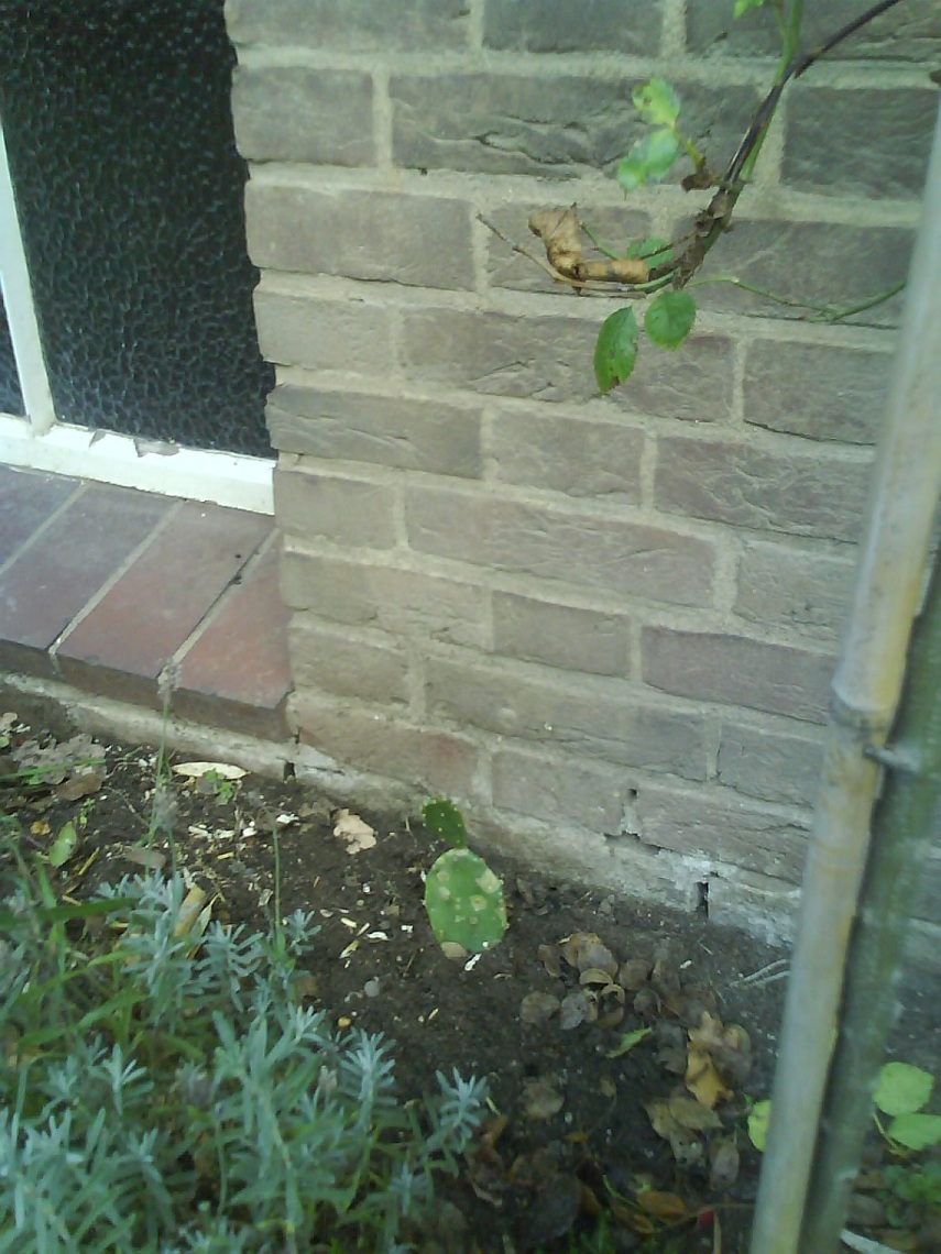 Achter de olijf staat een cactus (Opuntia?). Sinds deze van de vensterbank gewaaid is en de pot aan stukken lag heb ik bedacht om hem maar in de volle grond te proberen. Het is zandgrond en dicht bij de muur komt minder dan de helft van de normale neerslag door de dakgoot die erboven hangt. Dus als het zo'n vorstbestendige soort is moet hij het kunnen doen daar, denk ik... :roll: