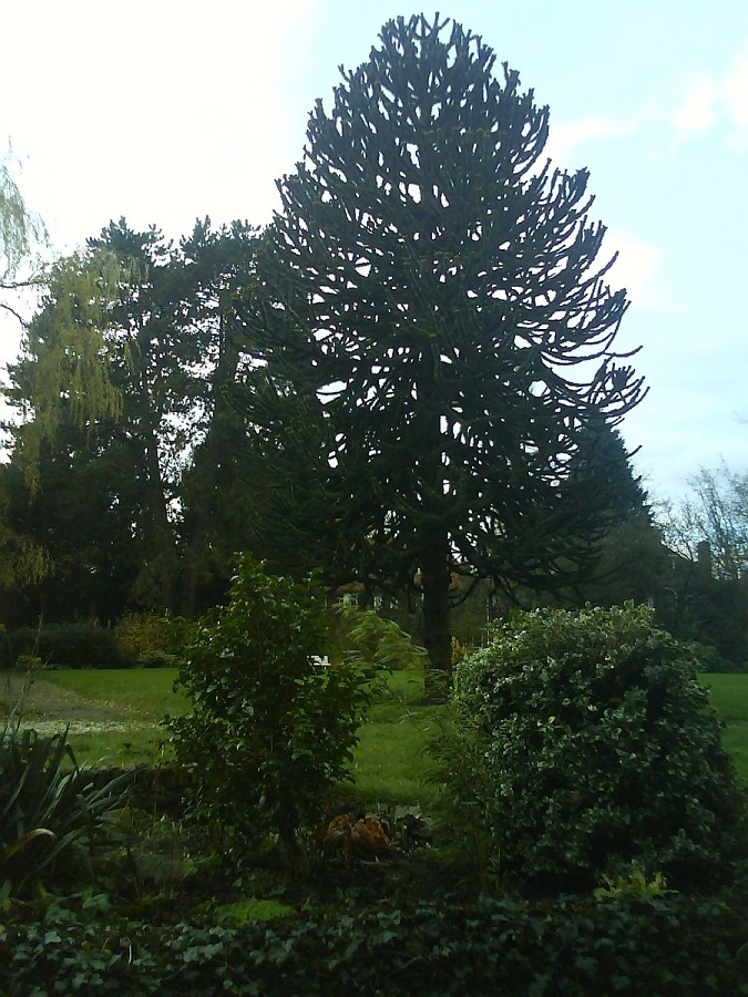 Zoals je ziet een mooi uitzicht midden in zo'n oude kloostertuin. De grote slangenden (Araucaria araucana) heb ik trouwens (in overleg met beheerder) deze zomer gesnoeid. De takken hingen daarvoor tot aan de grond. Heb er later wat struikjes onder geplant (o.a. zaailingen uit dezelfde tuin).