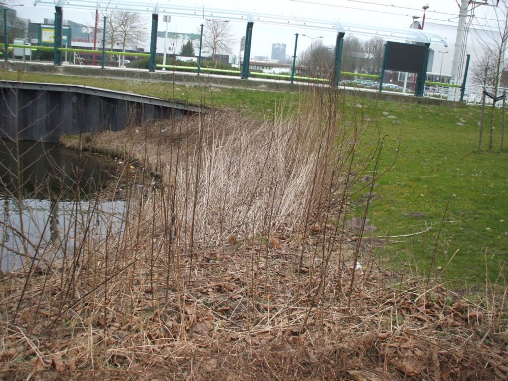 Omdat het ook aan een tramhalte ligt waar veel vandalisme plaatsvind ben ik rustig begonnen met kleine plantjes die niet veel waard zijn en snel groeien zoals Eucalyptus Gunnii, verschillende bamboe's, oost-indische kers en aardbeien om het onkruid te overwoekeren.