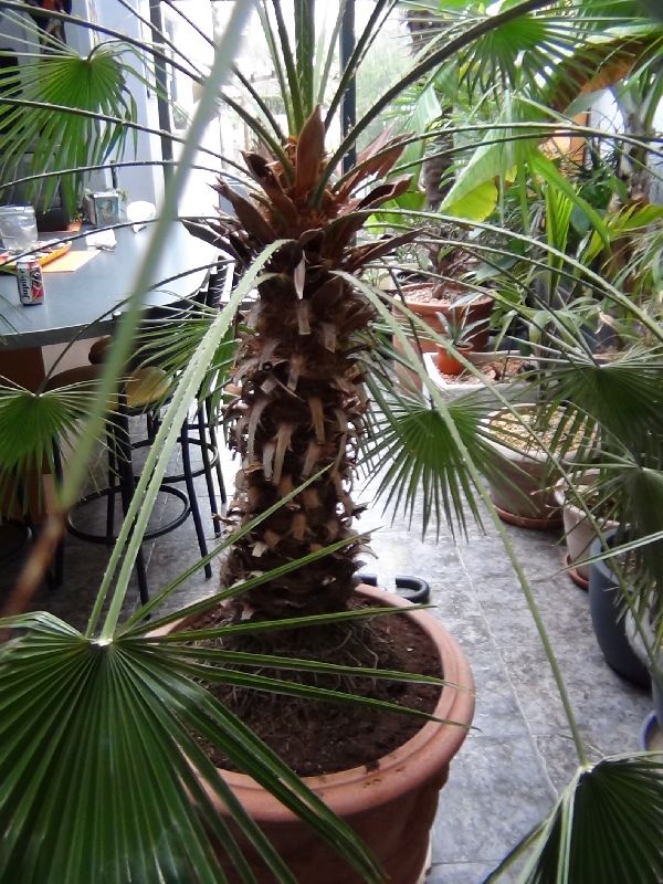 nieuwe aanwinst voor de tuin ,een Chamearops humilis met een stam van 80 cm